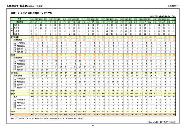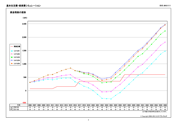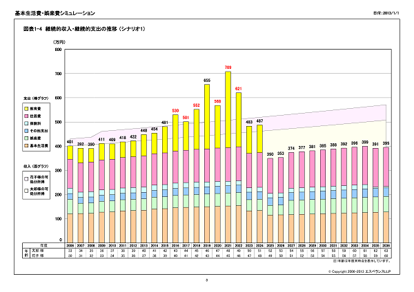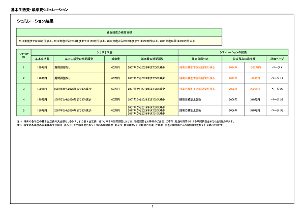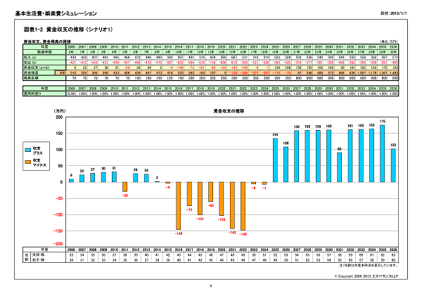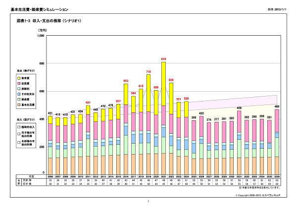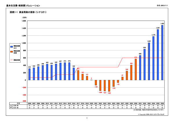 シミュレーション結果のサマリーを作成します。資金残高が残高目標を上回るかの判定や教育費の支出合計額を表示します。