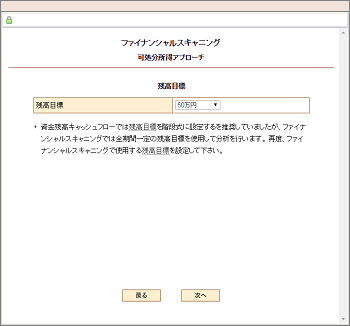 を指定します。 (ファイナンシャルスキャニングでは、全期間に渡って一定額の残高目標を再設定します。)