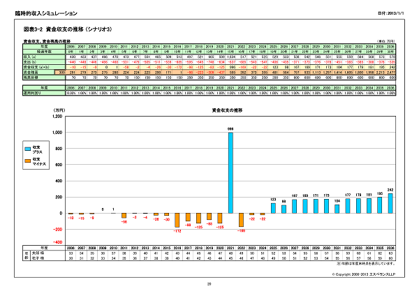 資金残高の推移のグラフを作成します。複数のシナリオの資金残高の推移を比較して表示します。