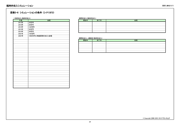 支出の推移の表を3ページに分けて作成します。(資金残高キャッシュフローと同じ内容となります。)