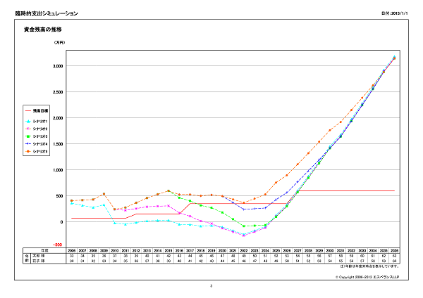 資金残高の推移のグラフを作成します。複数のシナリオの資金残高の推移を比較して表示します。