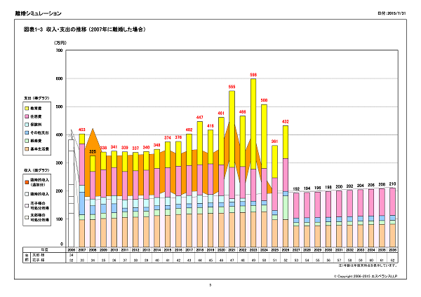 離婚後の収入・支出の推移のグラフを作成します。