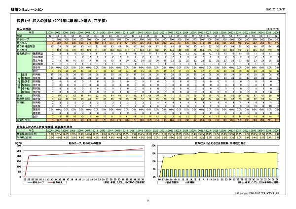 離婚後の収入の推移の表を作成します。