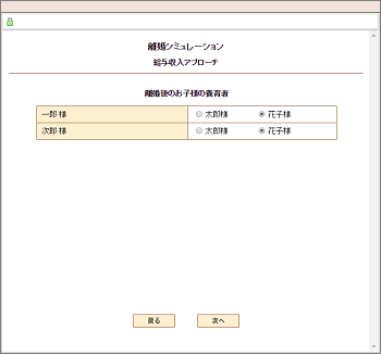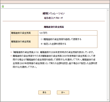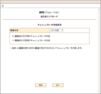 | 離婚年度と離婚後の夫と妻のどちらのキャッシュフローを作成するかを選択します。 |