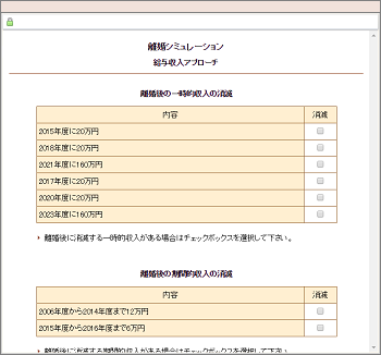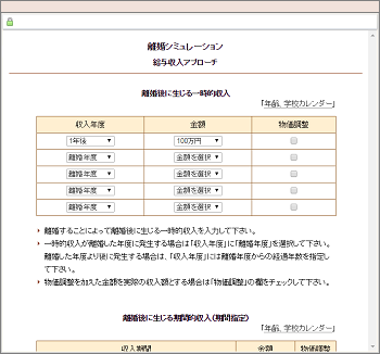 | 離婚後に生ずる臨時的収入(慰謝料や養育費←受け取る場合)を入力します。 |