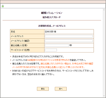 お客様の氏名、メールアドレスを入力します。 |