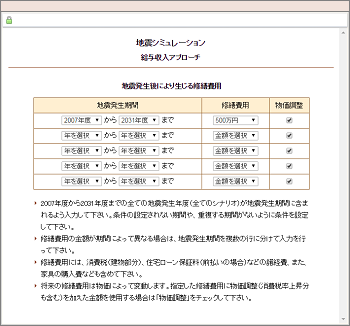 | 地震発生により生じる修繕費用を入力します。地震の発生時期によって修繕費用が異なる場合は、期間を分けて修繕費用を入力します。 |
