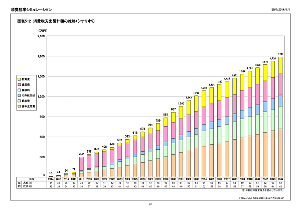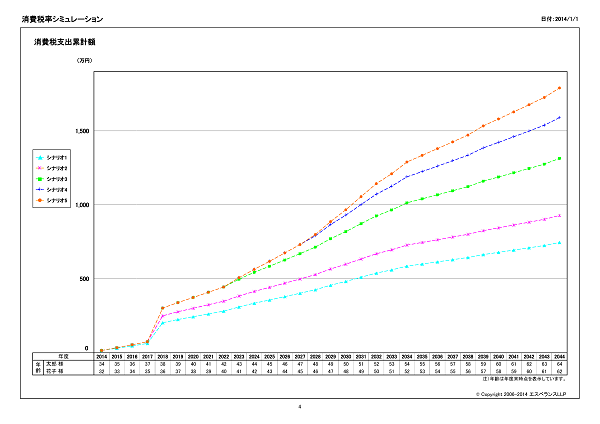各シナリオの消費税支出累計額の推移のグラフを作成します。