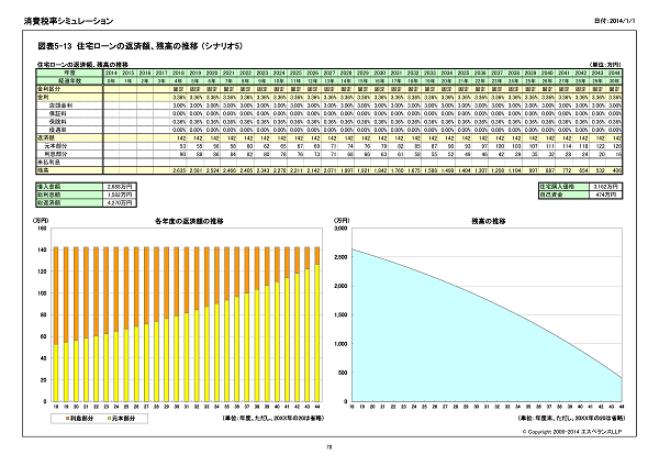 住宅ローンを使用している場合、各シナリオの住宅ローンの返済額、残高の推移のグラフを作成します。