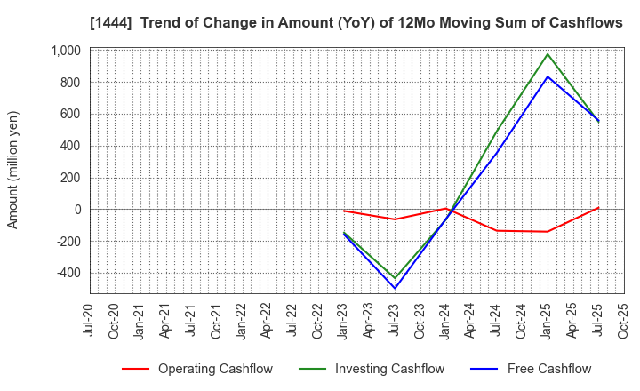 1444 Nissou Co.,Ltd.: Trend of Change in Amount (YoY) of 12Mo Moving Sum of Cashflows
