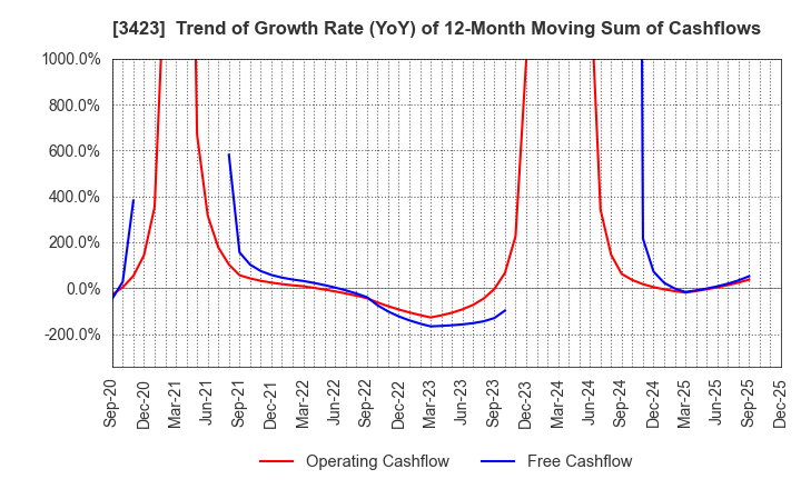 3423 S E Corporation: Trend of Growth Rate (YoY) of 12-Month Moving Sum of Cashflows