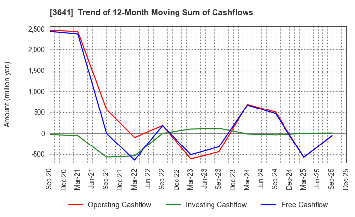 3641 PAPYLESS CO.,LTD.: Trend of 12-Month Moving Sum of Cashflows
