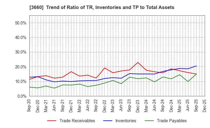 3660 istyle Inc.: Trend of Ratio of TR, Inventories and TP to Total Assets