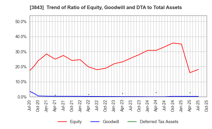 3843 FreeBit Co.,Ltd.: Trend of Ratio of Equity, Goodwill and DTA to Total Assets