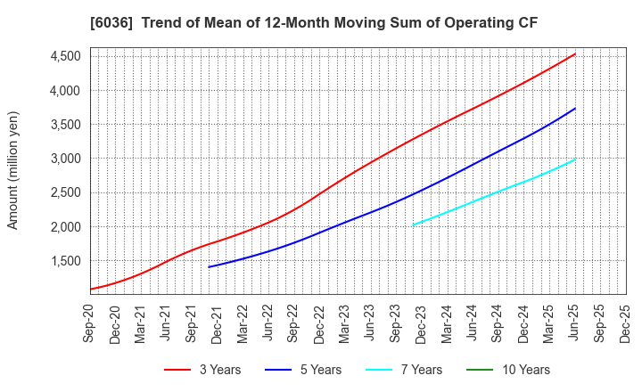 6036 KeePer Technical Laboratory Co., Ltd.: Trend of Mean of 12-Month Moving Sum of Operating CF