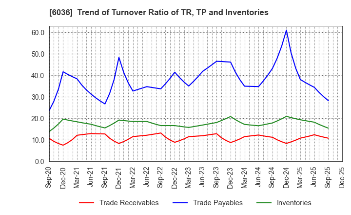 6036 KeePer Technical Laboratory Co., Ltd.: Trend of Turnover Ratio of TR, TP and Inventories