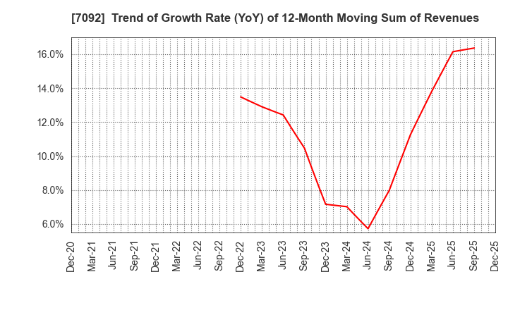 7092 Fast Fitness Japan Incorporated: Trend of Growth Rate (YoY) of 12-Month Moving Sum of Revenues