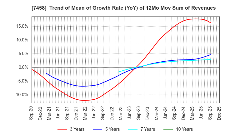 7458 DAIICHIKOSHO CO.,LTD.: Trend of Mean of Growth Rate (YoY) of 12Mo Mov Sum of Revenues
