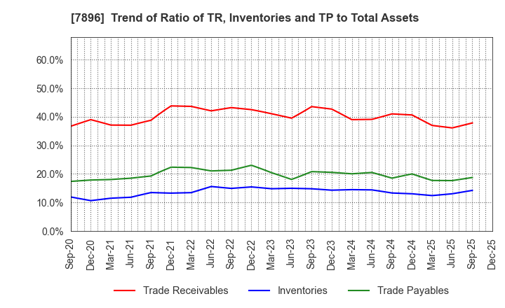 7896 SEVEN INDUSTRIES CO.,LTD.: Trend of Ratio of TR, Inventories and TP to Total Assets