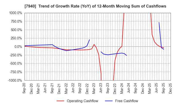 7940 WAVELOCK HOLDINGS CO.,LTD.: Trend of Growth Rate (YoY) of 12-Month Moving Sum of Cashflows