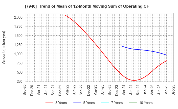 7940 WAVELOCK HOLDINGS CO.,LTD.: Trend of Mean of 12-Month Moving Sum of Operating CF