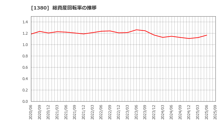 1380 (株)秋川牧園: 売上債権回転率、買入債務回転率、在庫回転率の推移