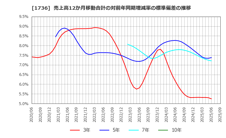 1736 (株)オーテック: 売上高12か月移動合計の対前年同期増減率の標準偏差の推移